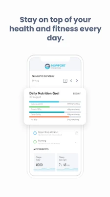 With the NewportSwimFit App, you can start tracking your workouts and meals, measuring results, and achieving your fitness goals, all with the help of your personal trainer.