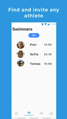 In a few seconds you will see available athletes sorted by their disciplines and times.
